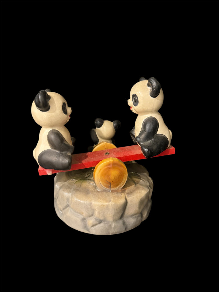 Rare Vintage Panda Bears Musical Seesaw Moves & Plays Music